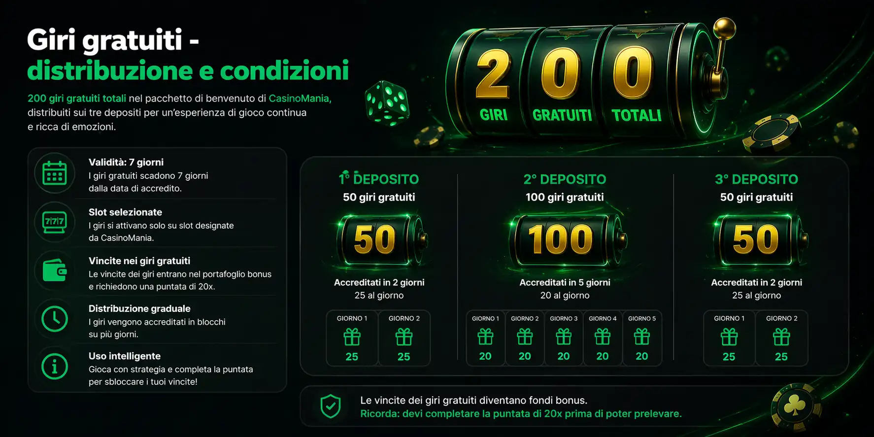 | Vincite Giri Gratuiti | 20x | N/D (valore giro fisso) | 30 giorni |